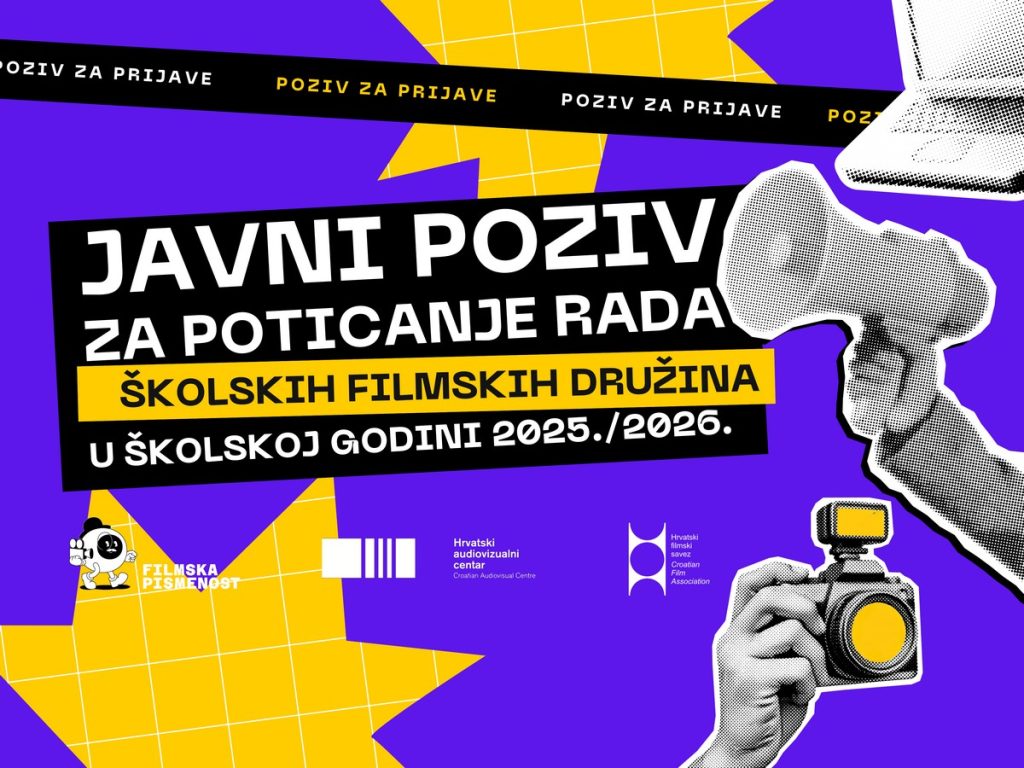Kako bi se školskim filmskim družinama osigurala financijska potpora za njihov rad i stvaranje audiovizualnih djela, raspisan je javni poziv namijenjen školama u kojima djeluju filmske i medijske skupine. Hrvatsko audiovizualno vijeće je dana 29.…