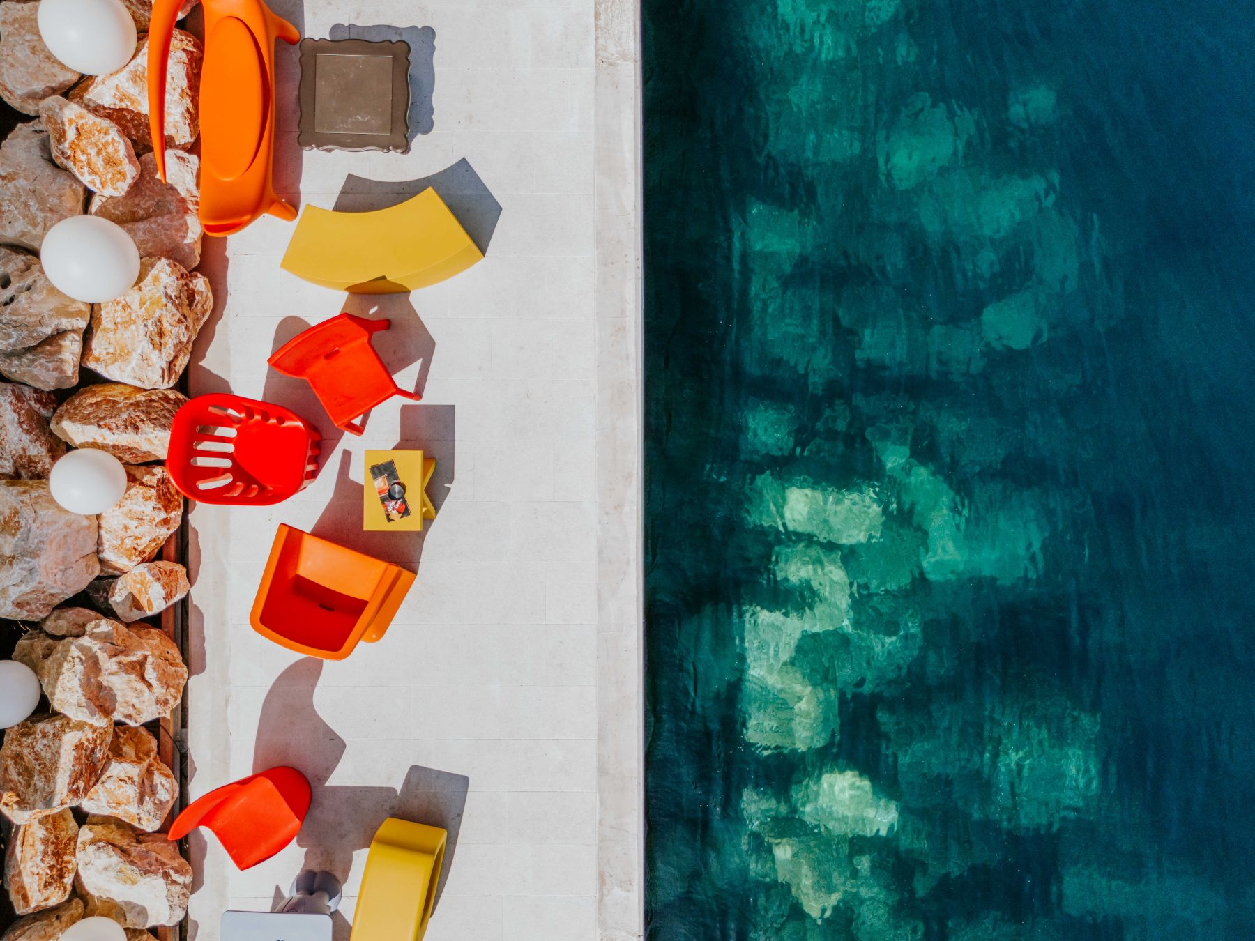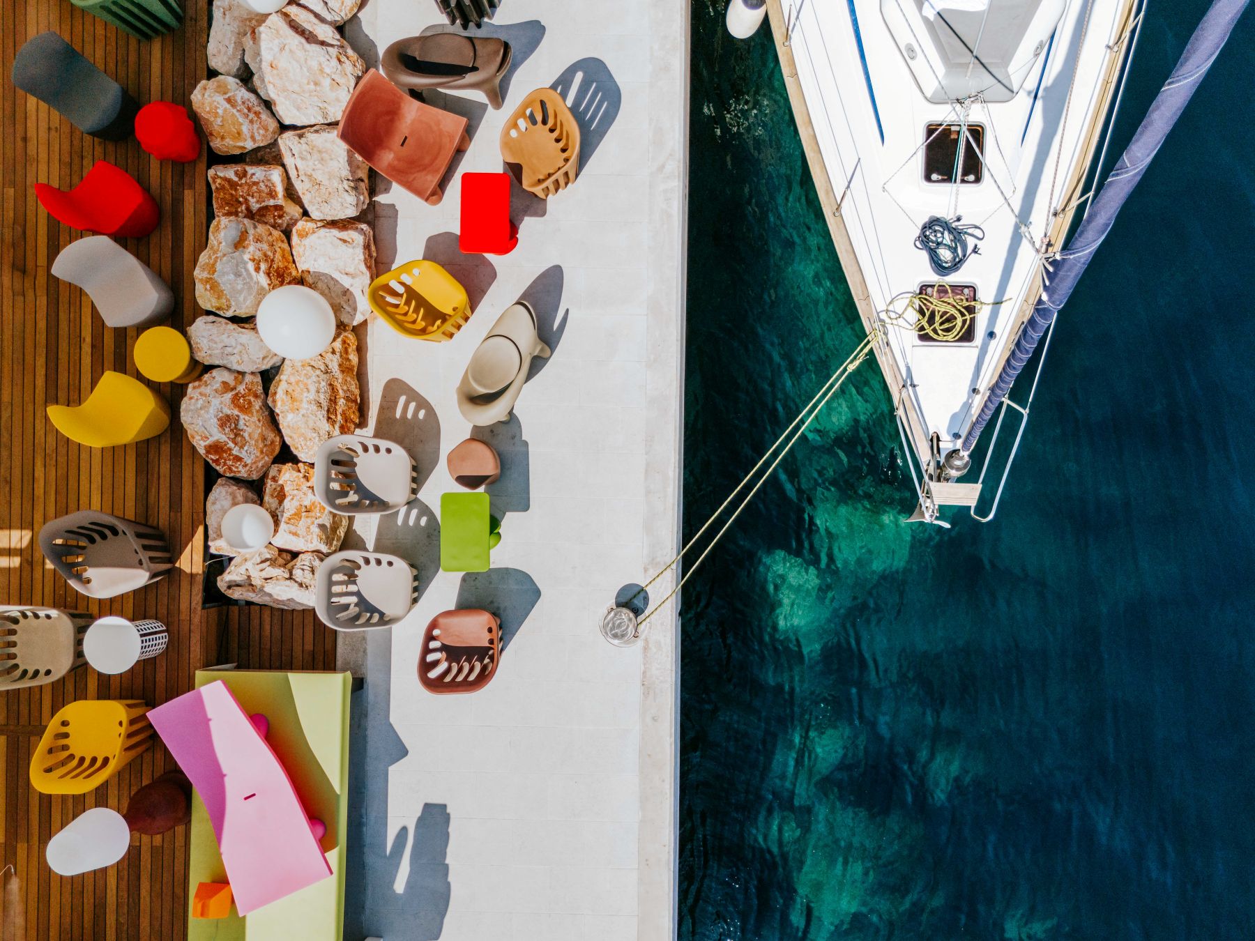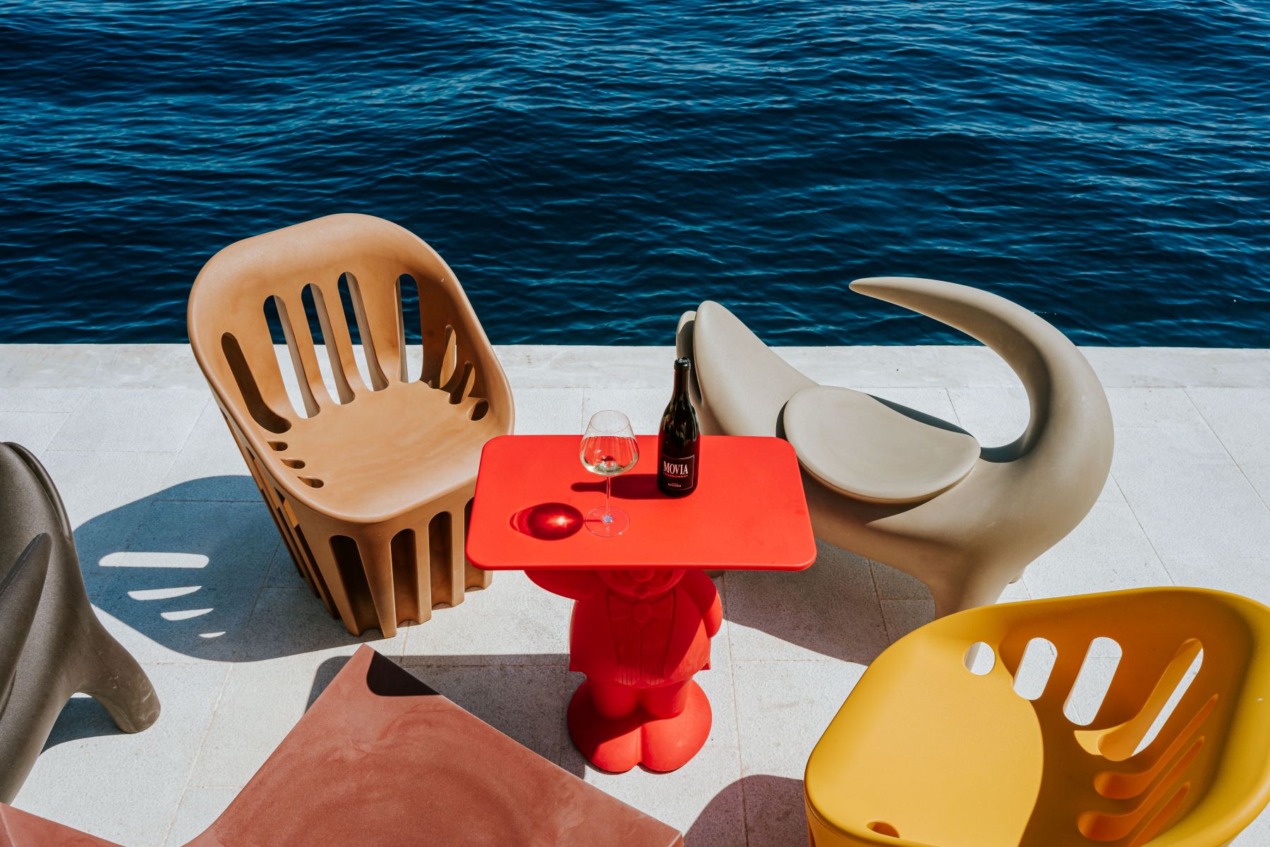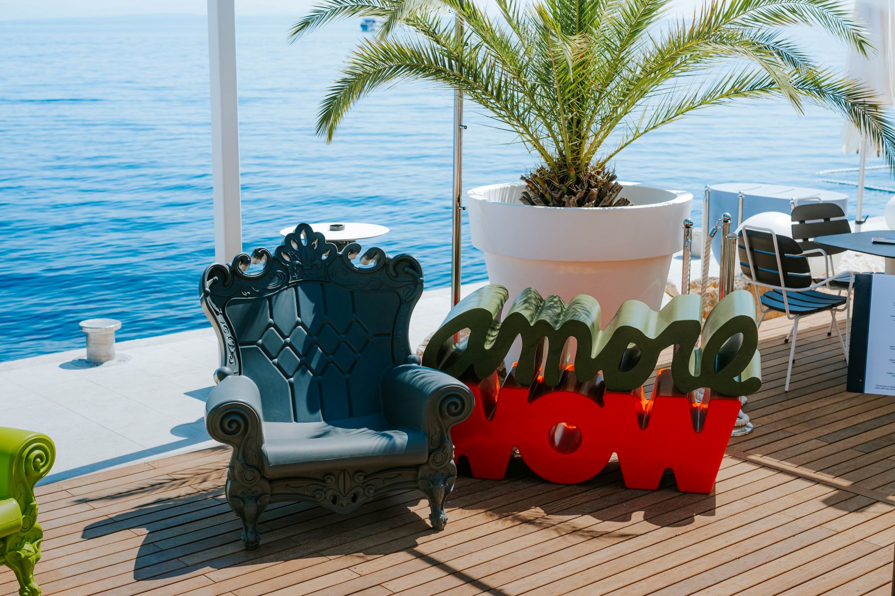 Uređenje prostora potpisuje arhitekt Siniša Glušica iz studija Dražul Glušica arhitekti, a novi vizualni identitet odlikuju vibrantne boje i razigrani oblici. Prostor je opremljen dizajnerskim namještajem talijanske marke Slide iz Milana, iza kojeg stoje renomirani kreatori poput Paole Navone, Marcantonia, Favaretto&Partnersa, Roberta Paolija, Karim Rashida i drugih. Riječ je o odvažnom odmaku od tipičnih stilova uređenja, što Amore Sea Clubu daje prepoznatljiv i ležeran karakter.