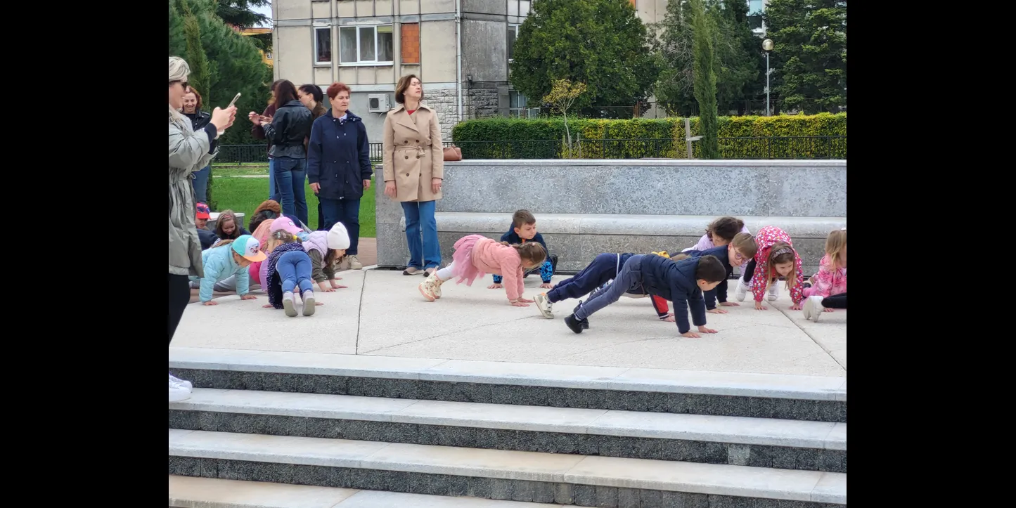 Na Spomeniku rudaru borcu sve sudionike dočekao je kratki program vježbanja. S djecom iz vrtića vježbe je vodio vrtićki kineziolog, dok je s učenicima Osnovne škole „Ivo Lola Ribar“ razgibavanje proveo školski kineziolog. Nakon aktivnosti uslijedio je odmor uz voće i sokove, a veselo raspoloženje dodatno su upotpunili glazba i ples prije povratka.